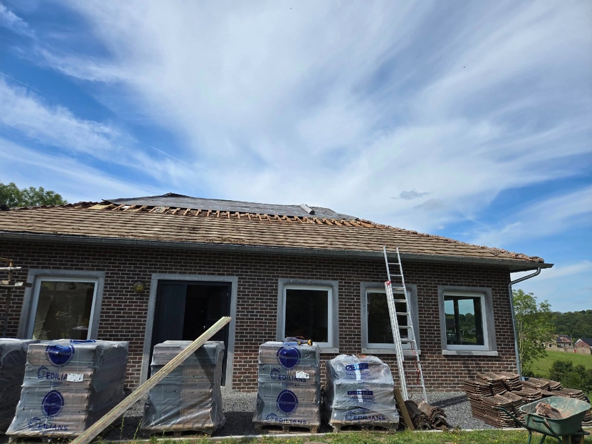 Je conçois et rénove des toitures en tuiles adaptées à tous les styles d’habitation. Ce type de couverture est le plus répandu en Belgique, apprécié pour sa solidité, son isolation naturelle et sa résistance aux intempéries. En tant que couvreur expérimenté, je m’occupe de chaque étape, du choix des tuiles jusqu’à la fixation finale sur votre toit.
